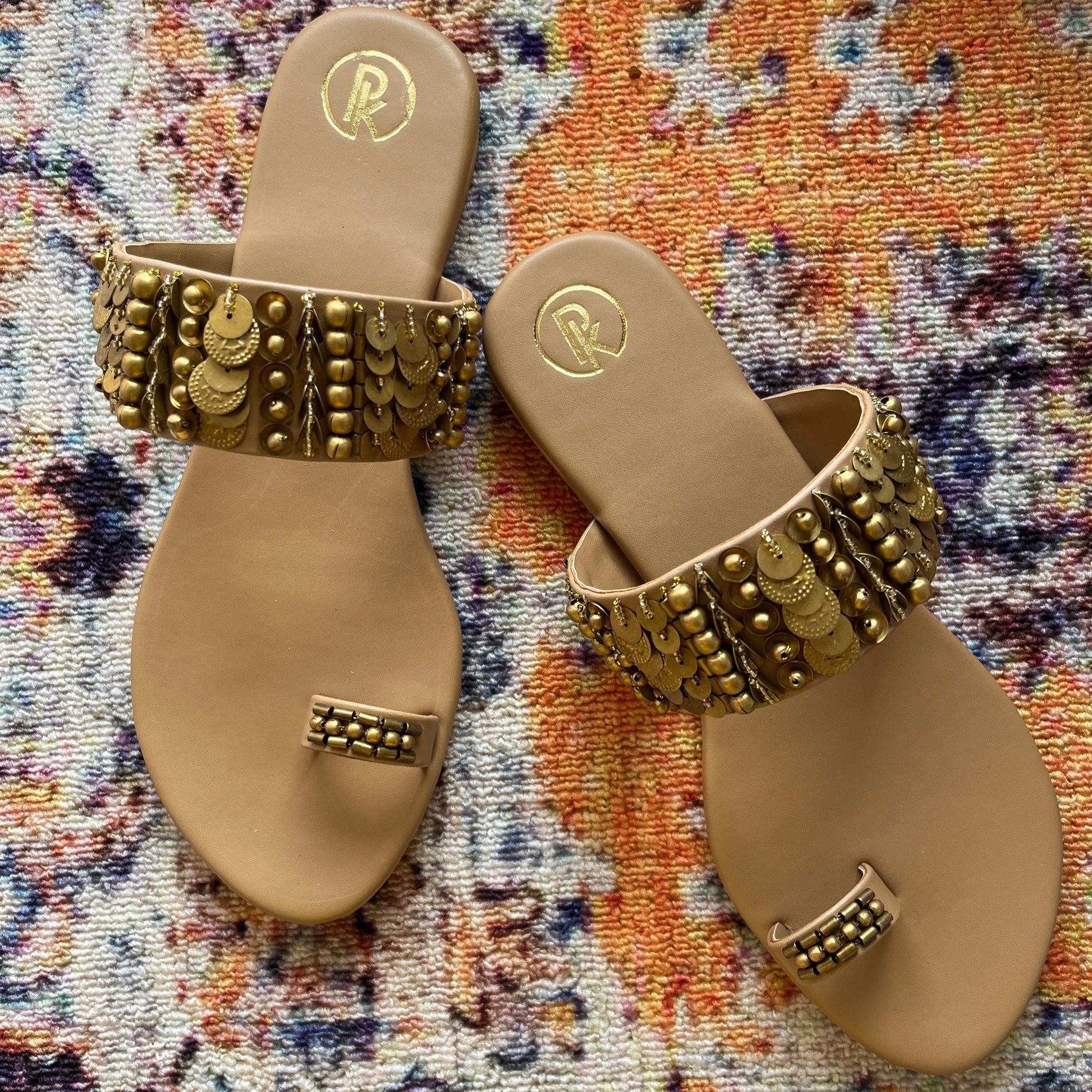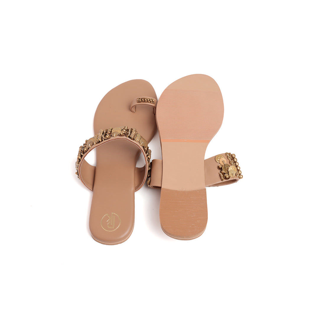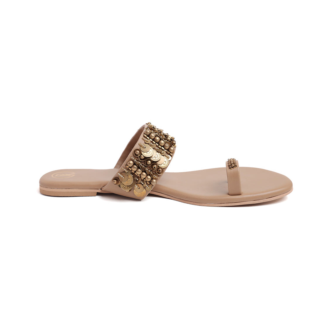 Hand-embroidered with coins and metal work these thumb flats are giving off a perfect bohemian look for your vacation. With its unique design, these flats are both stylish and comfortable.
