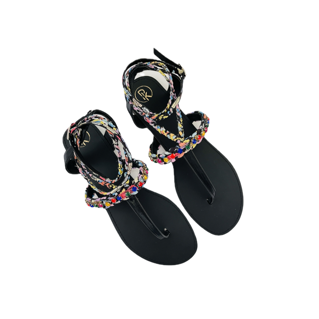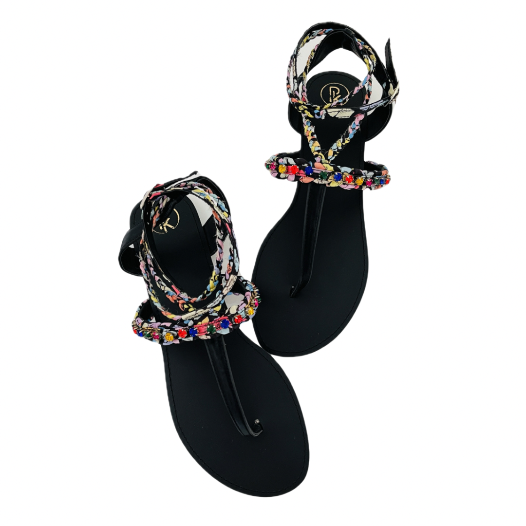 Stay stylish and comfortable on your next vacation with our BLACK POPPY T STRAP SANDALS. Featuring a custom poppy print and diamond studs, these sandals are the perfect addition to any vacation wear. The ankle straps provide a secure fit while adding a touch of elegance. Elevate your warm weather wardrobe with these must-have sandals.