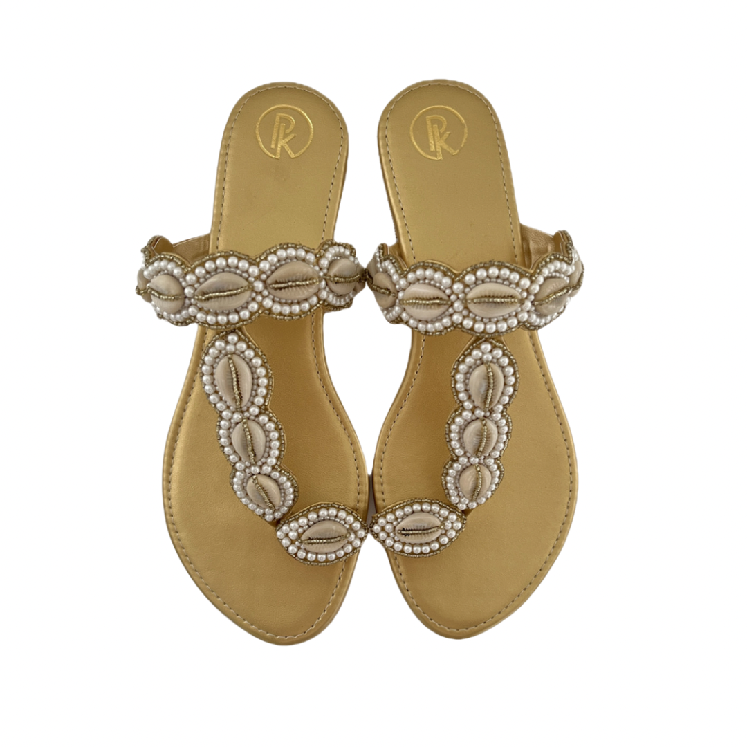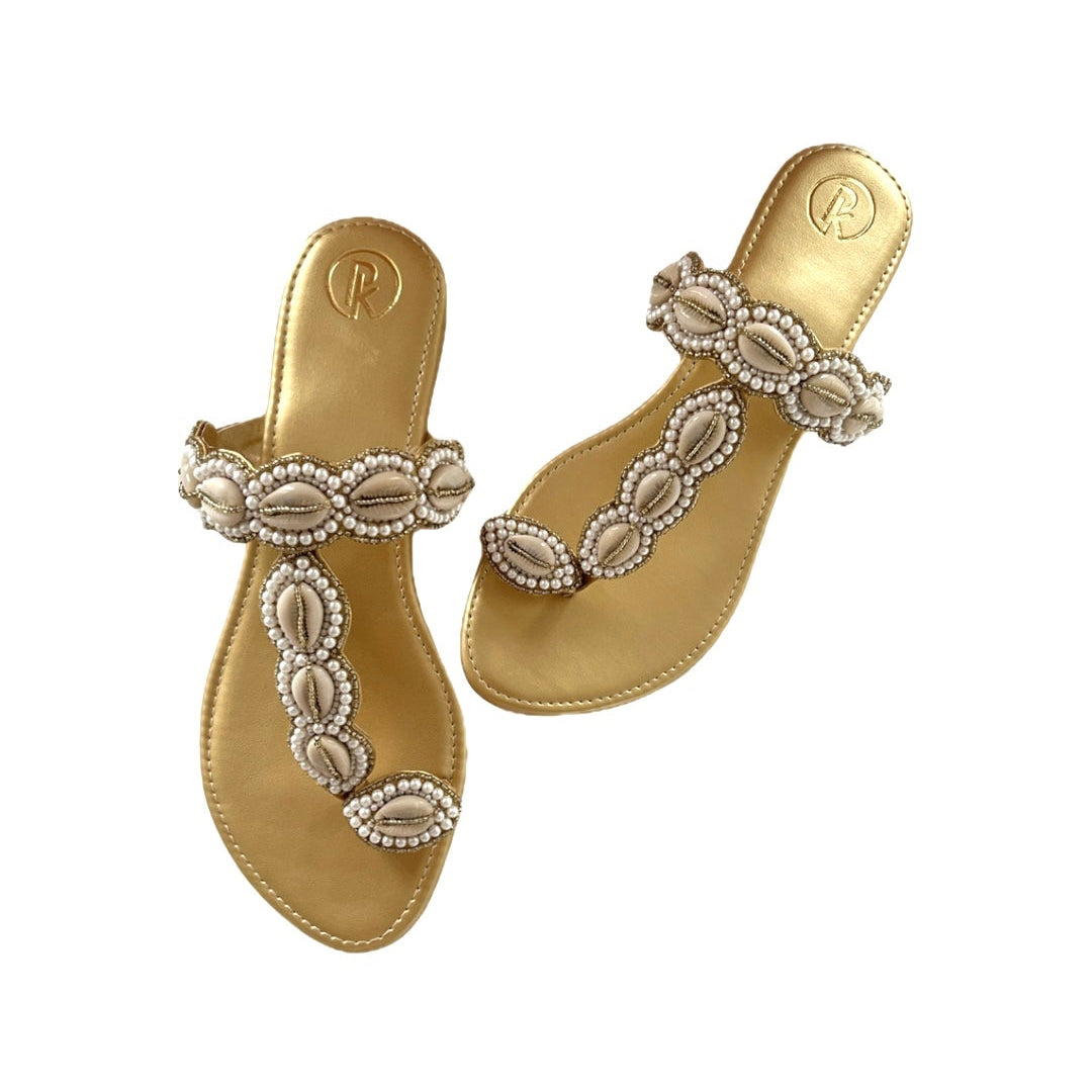 Gold Cowrie Kolhapuri Flats