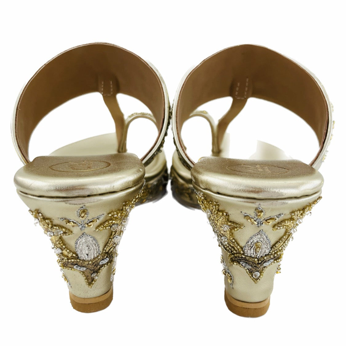 Introducing the NOOR WEDGES, your go-to shoe for every occasion. Featuring elegant gold embroidery on the heels, this versatile wedge is a wedding favorite. Its variety of shades of gold and silver will effortlessly complement any outfit, making it the perfect choice for any event.